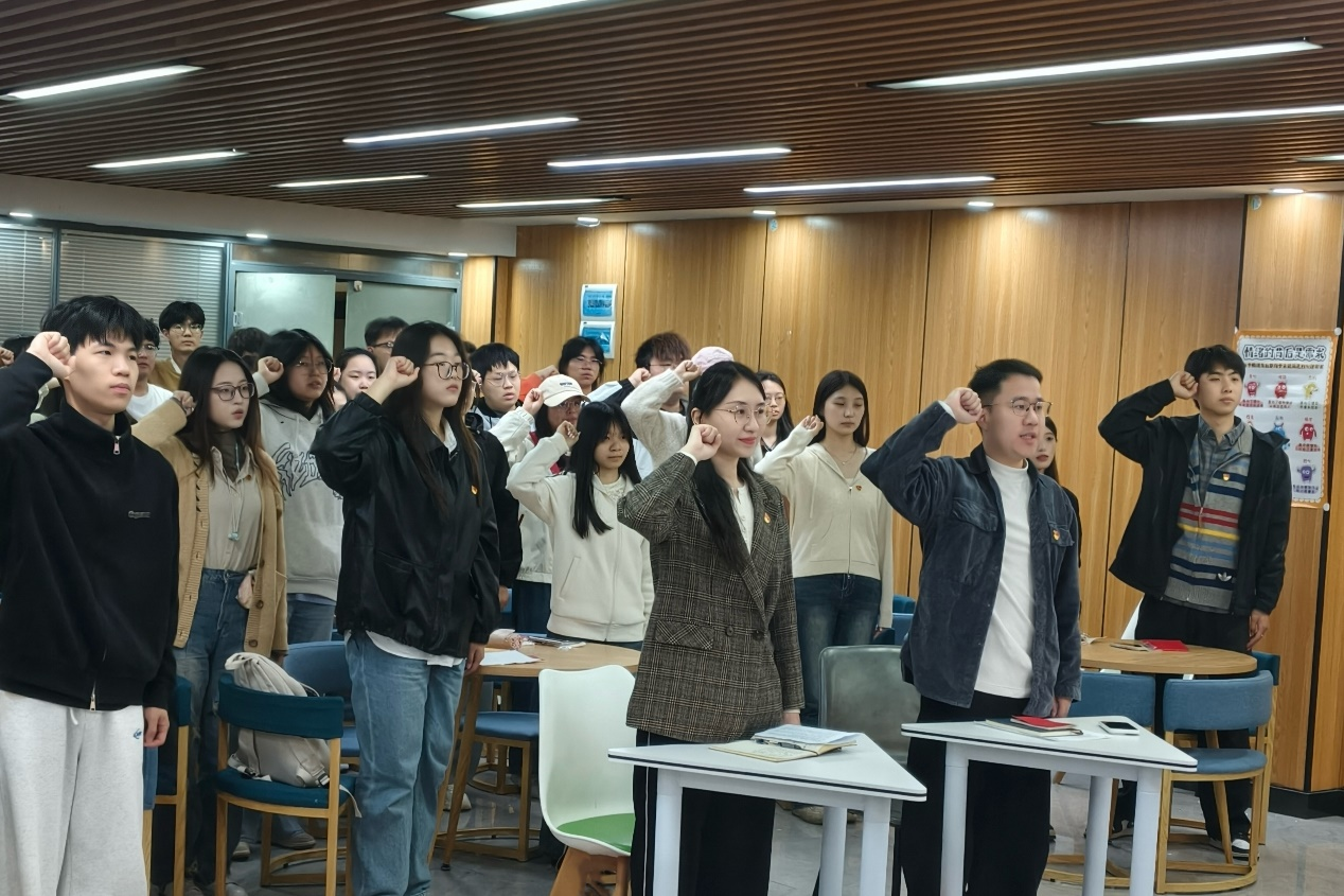 活动在庄严的国歌声中拉开帷幕,全体党员肃立致敬,激昂的旋律激发了深厚的爱国情怀。在通信专业学生党支部书记郑鹏凯的带领下,全体党员面向党旗,重温入党誓词,彰显不忘初心、牢记使命的坚定信念。