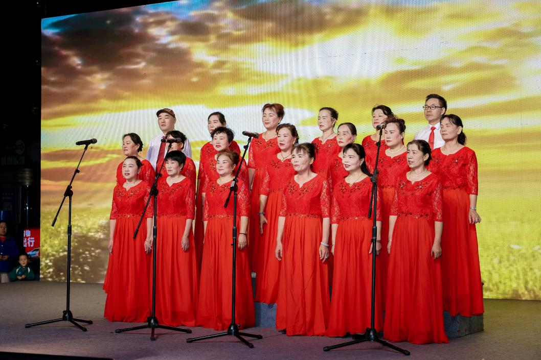 为切实解决社区老年群体的生活需求,知音汇团队开展多期合唱教学课程。9 月 19 日,大舒社区老年合唱团在佛祖岭街道同兴广场举行了红歌联唱表演。合唱团的成员身着统一的红色演出服,在志愿者的指挥下,他们以饱满的热情、嘹亮的歌声,调整着演唱的节奏与和声。恰逢国庆将至,一首首经典红歌依次唱响,激昂的旋律唤起大家对祖国的无限热爱。