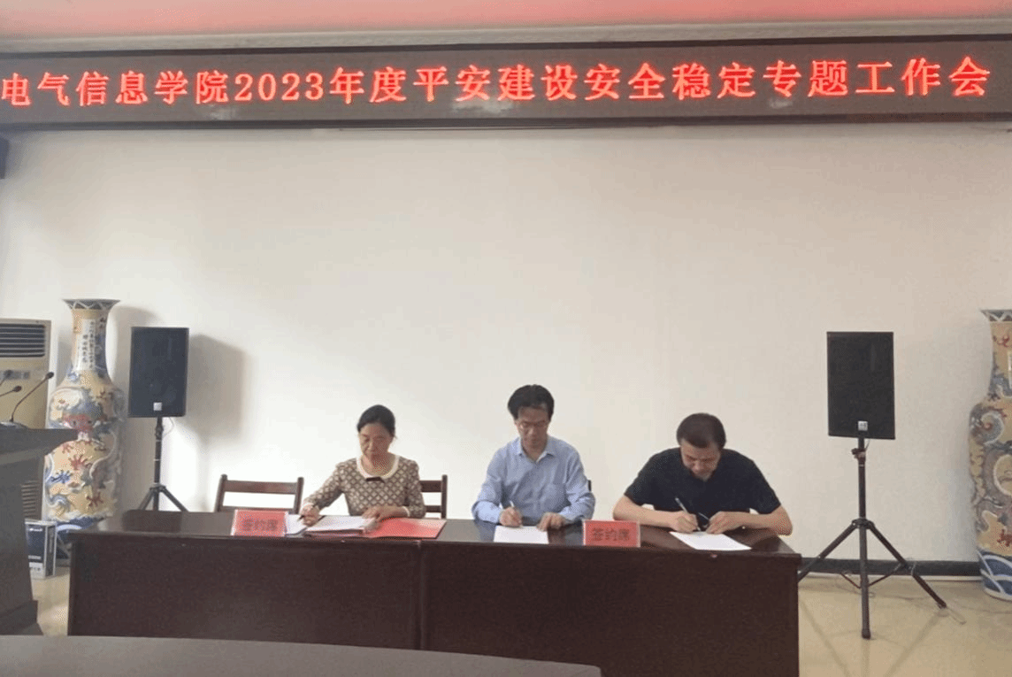 会上,学院党委书记谢春晖、院长洪汉玉与三级单位代表签订2023年度平安建设目标管理责任书,与过程检测仪表实验室负责人签订教学实验室安全管理责任书,与智慧网络与信息处理研究室负责人签订科研实验室安全管理责任书。
